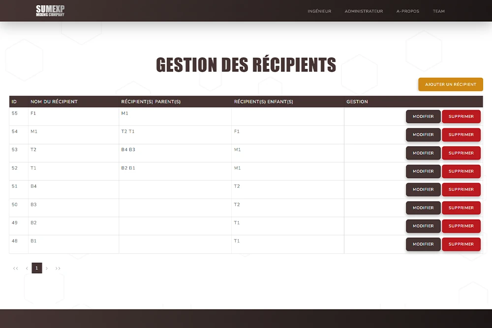 - Interface de gestion et de création de recettes et mélanges