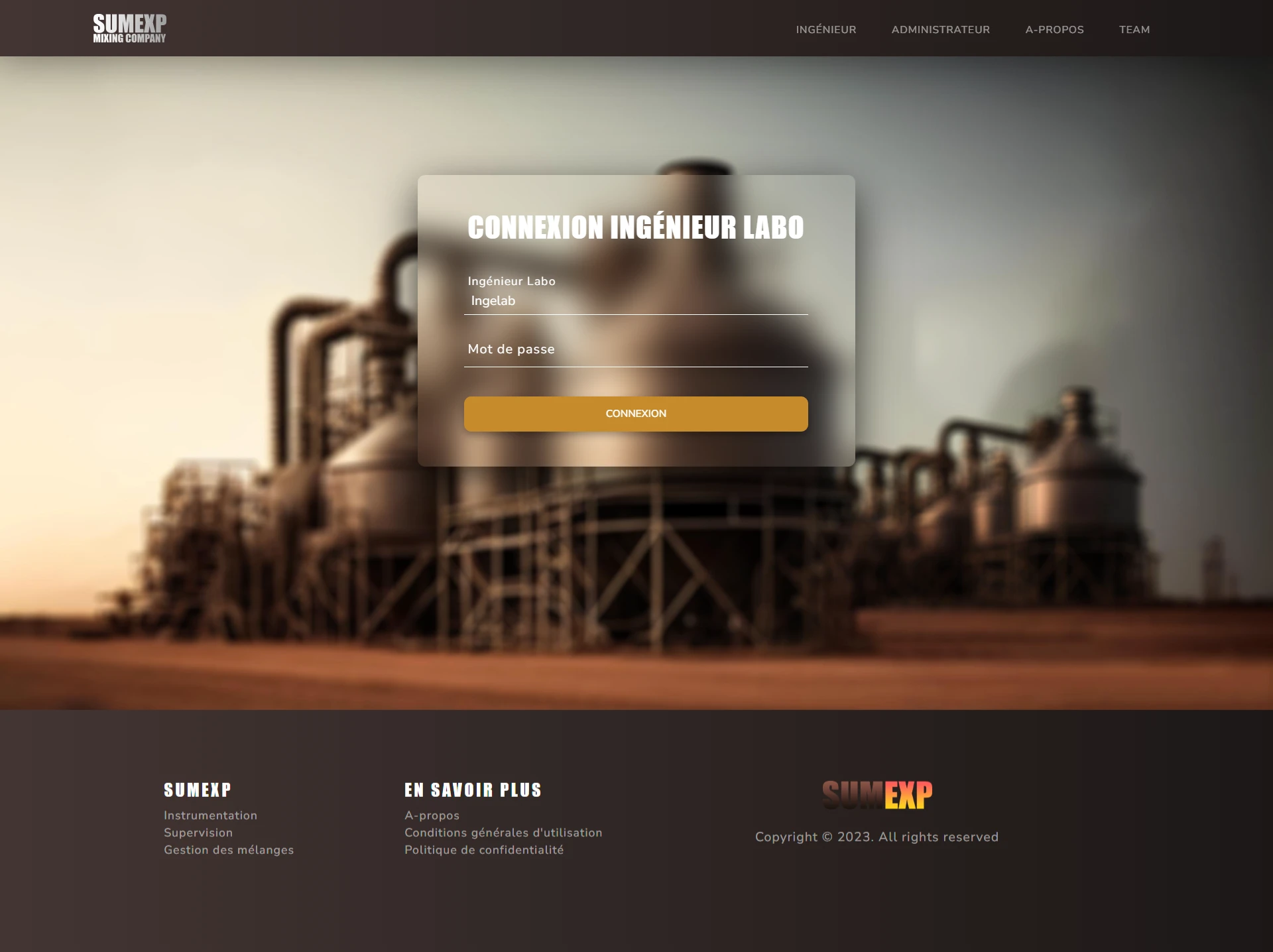 Le site web SUMEXP est un site de supervision d'une unité de mélange expérimental.