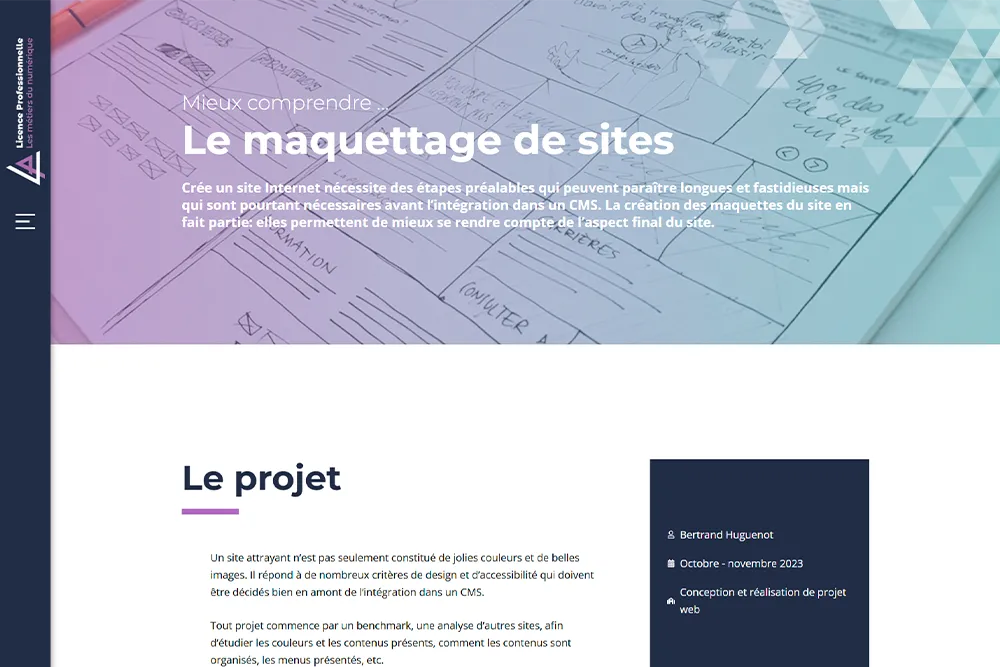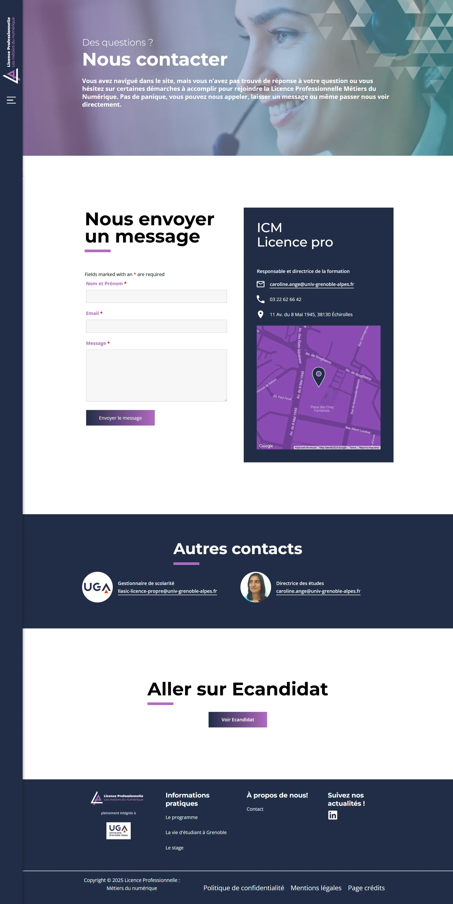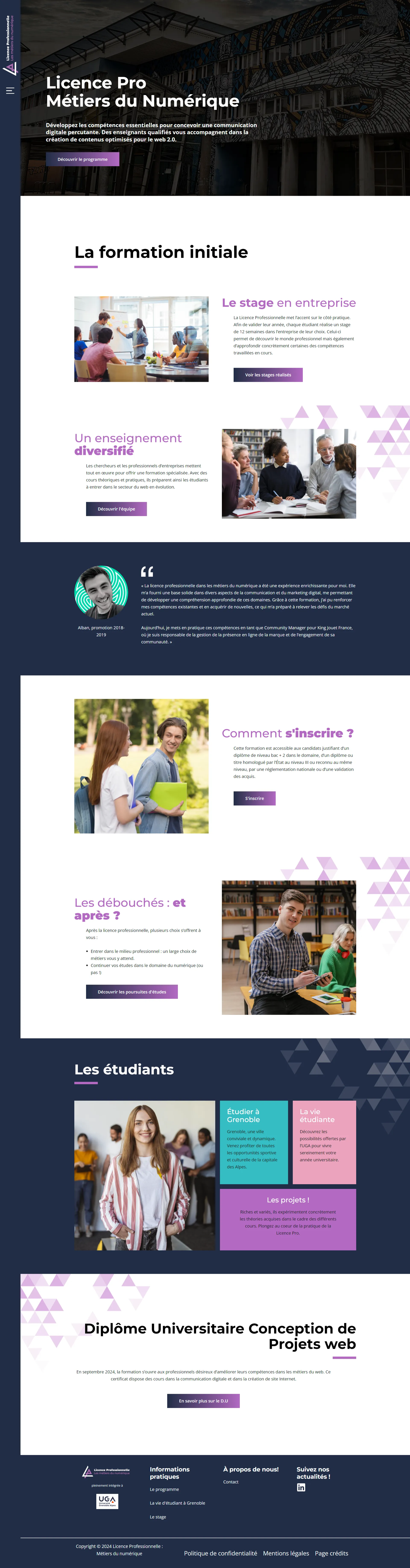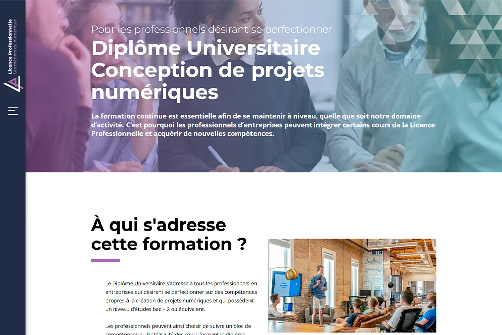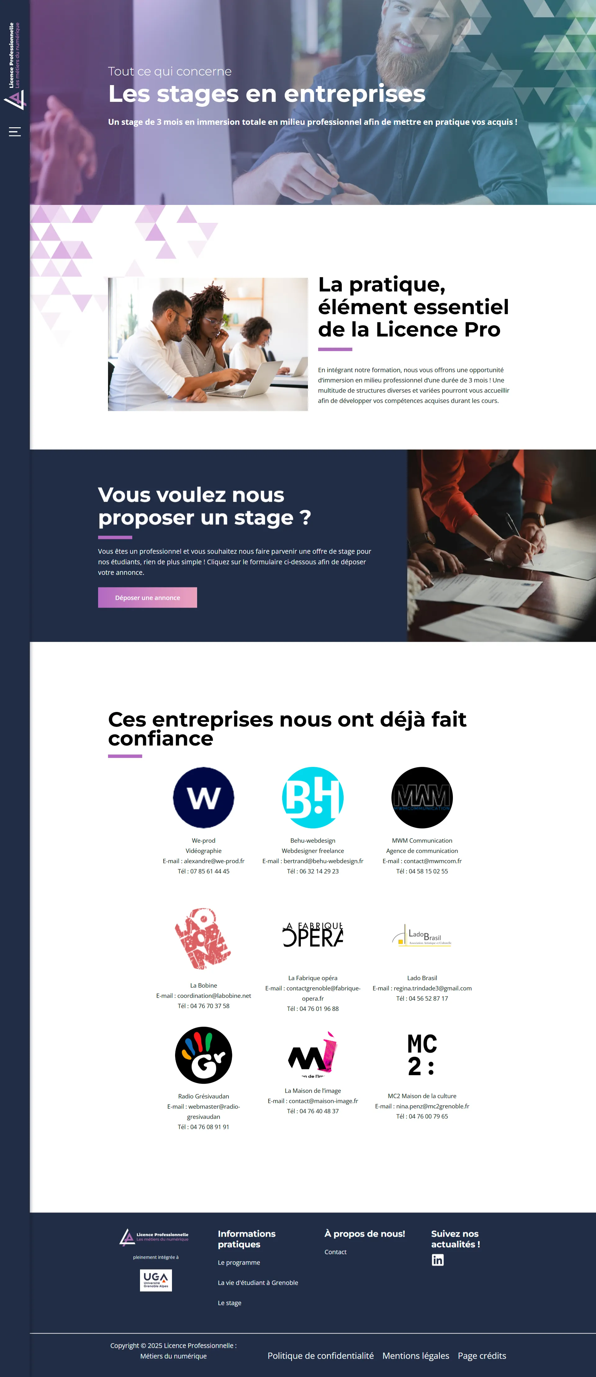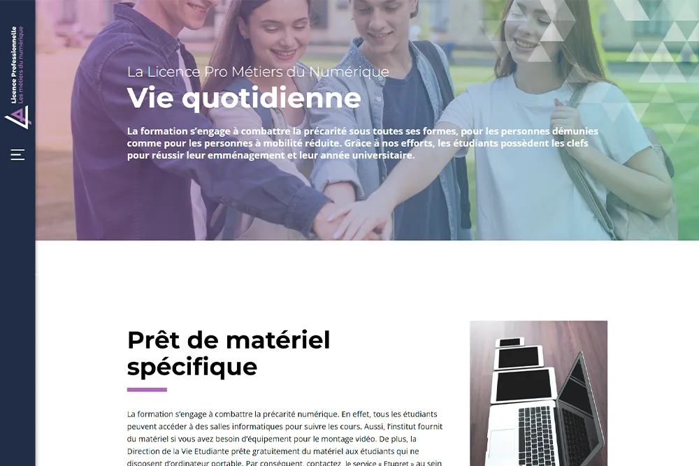 Notre formation ne possédant pas de site Web adéquat, il nous a été confié à nous les étudiants, la tâche de réaliser le site Web pour notre Licence Professionnelle, commandité par l'université même.