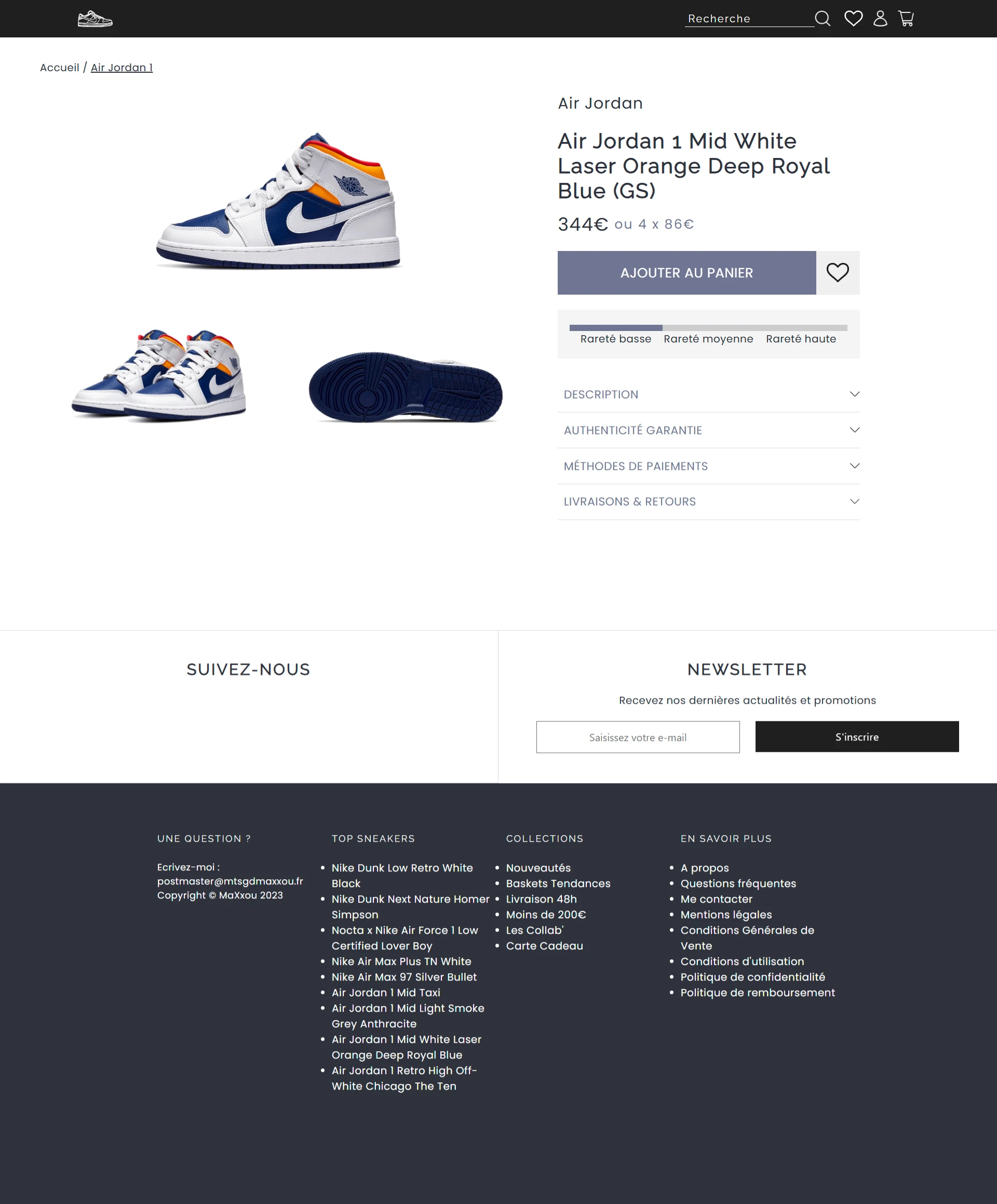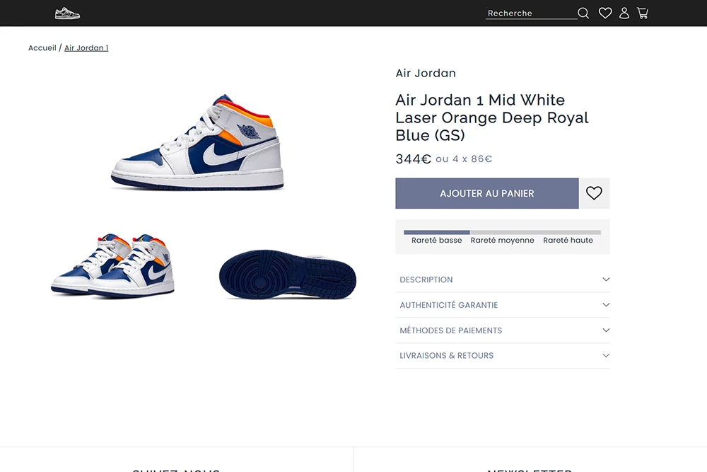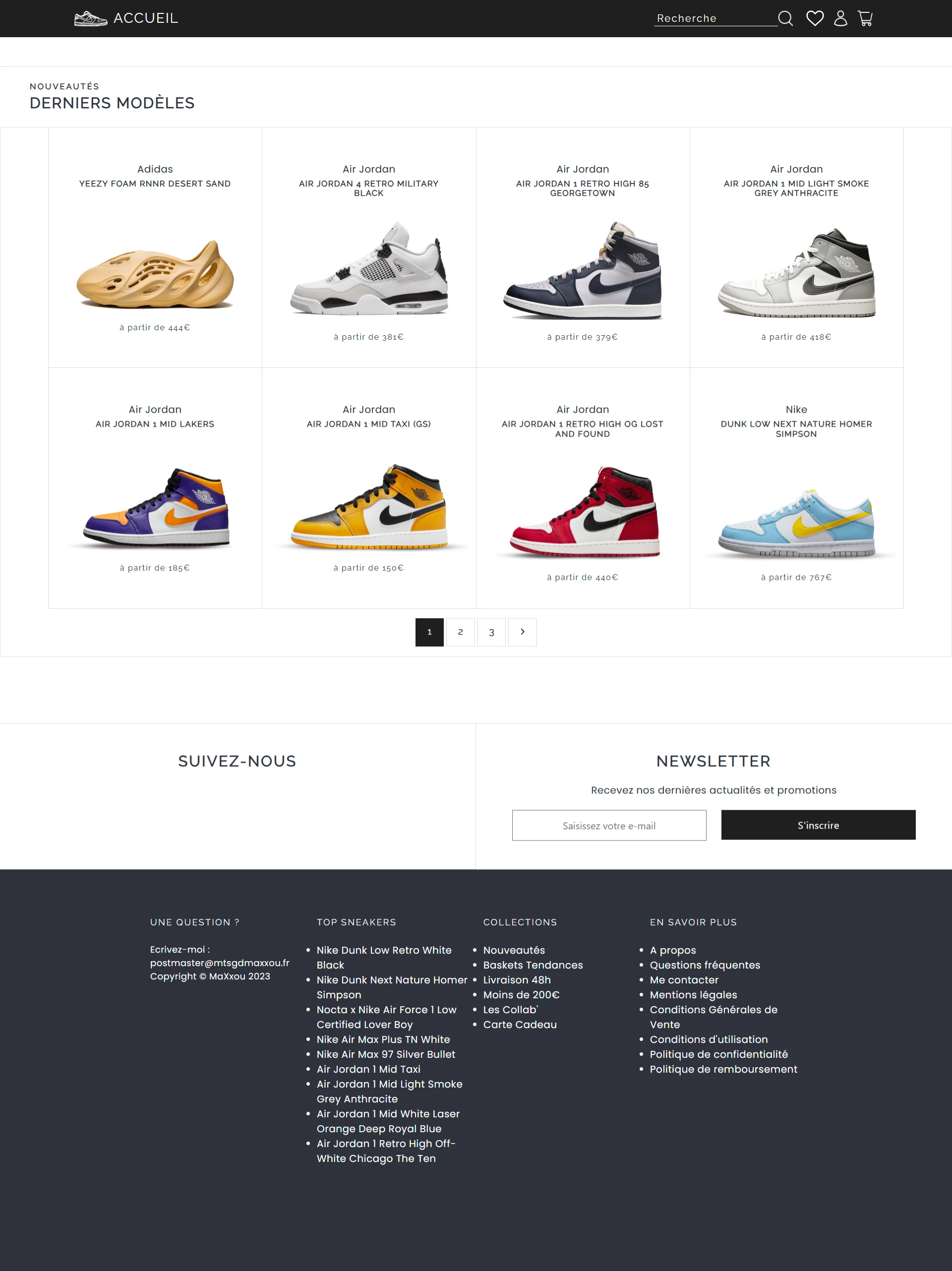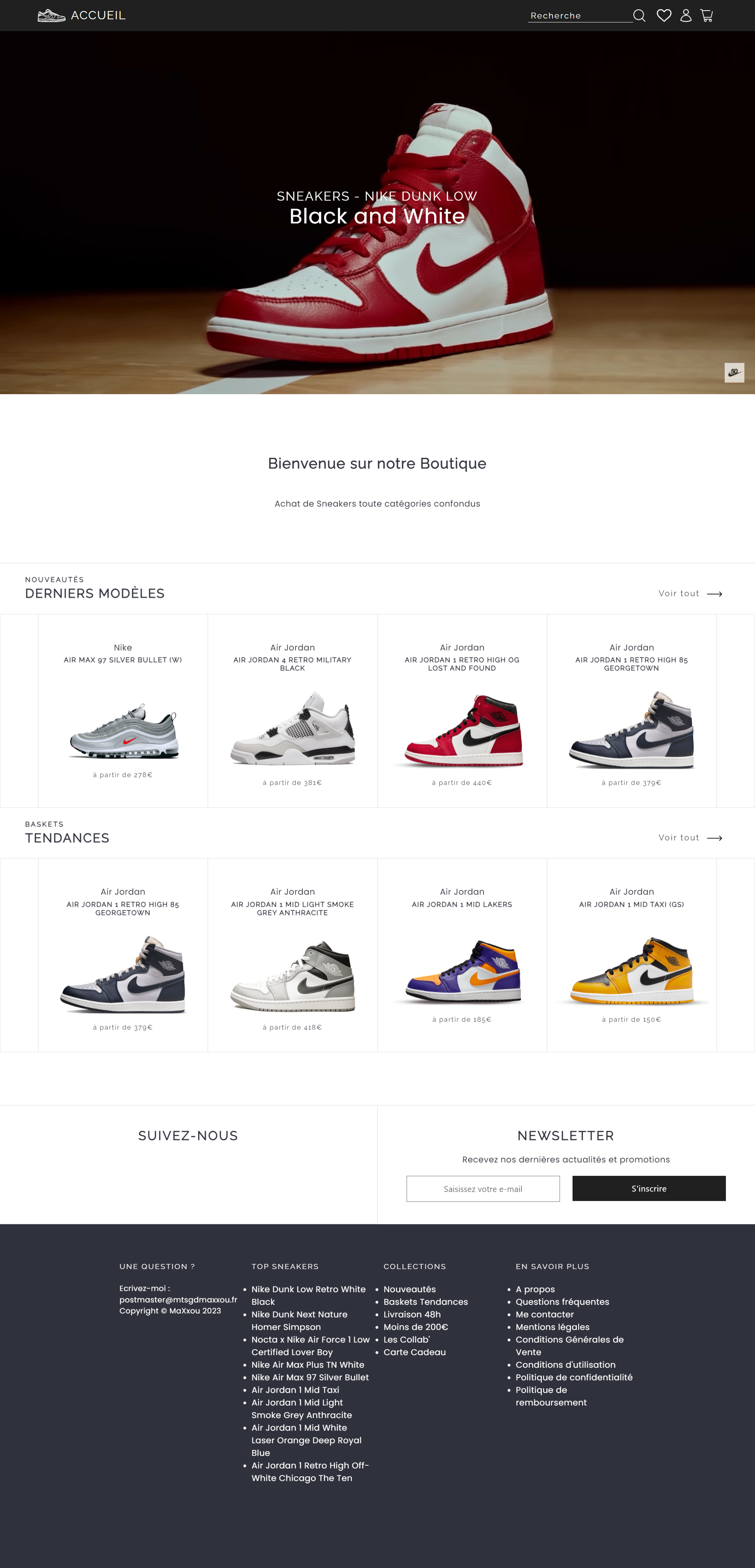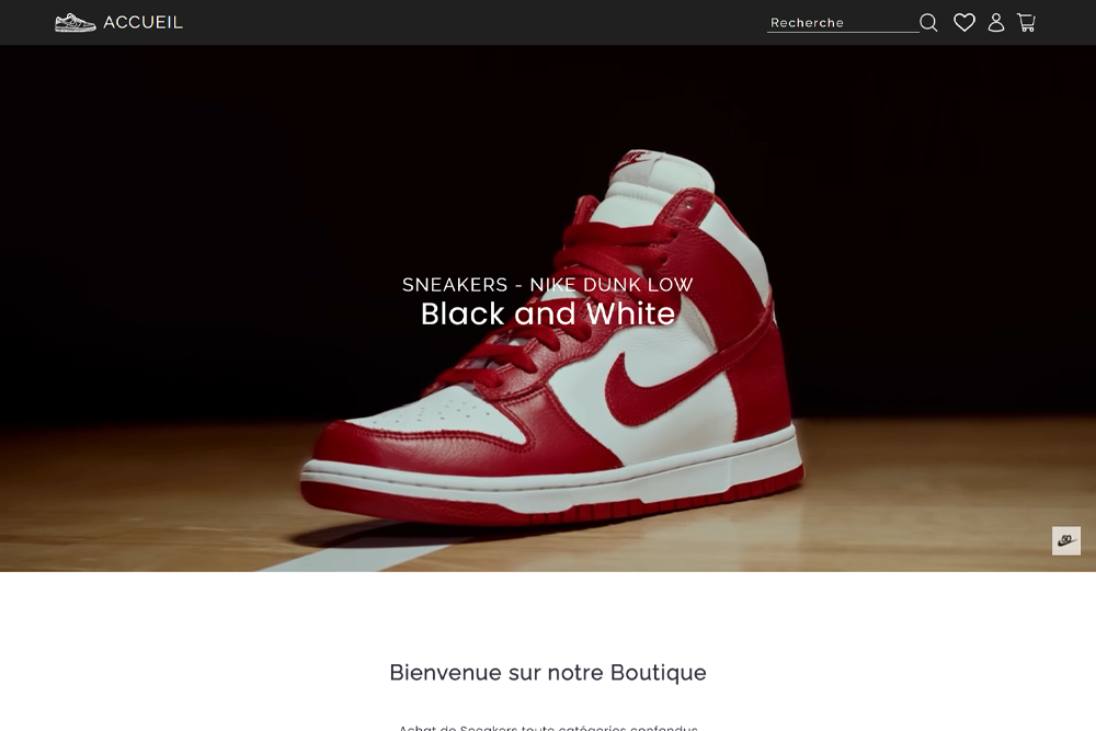Sneakers Boutique FR est un site de vente de sneakers fictif. Ce site n’est pas destiné à la vente réelle, mais à la démonstration de mes compétences en développement web et en design.