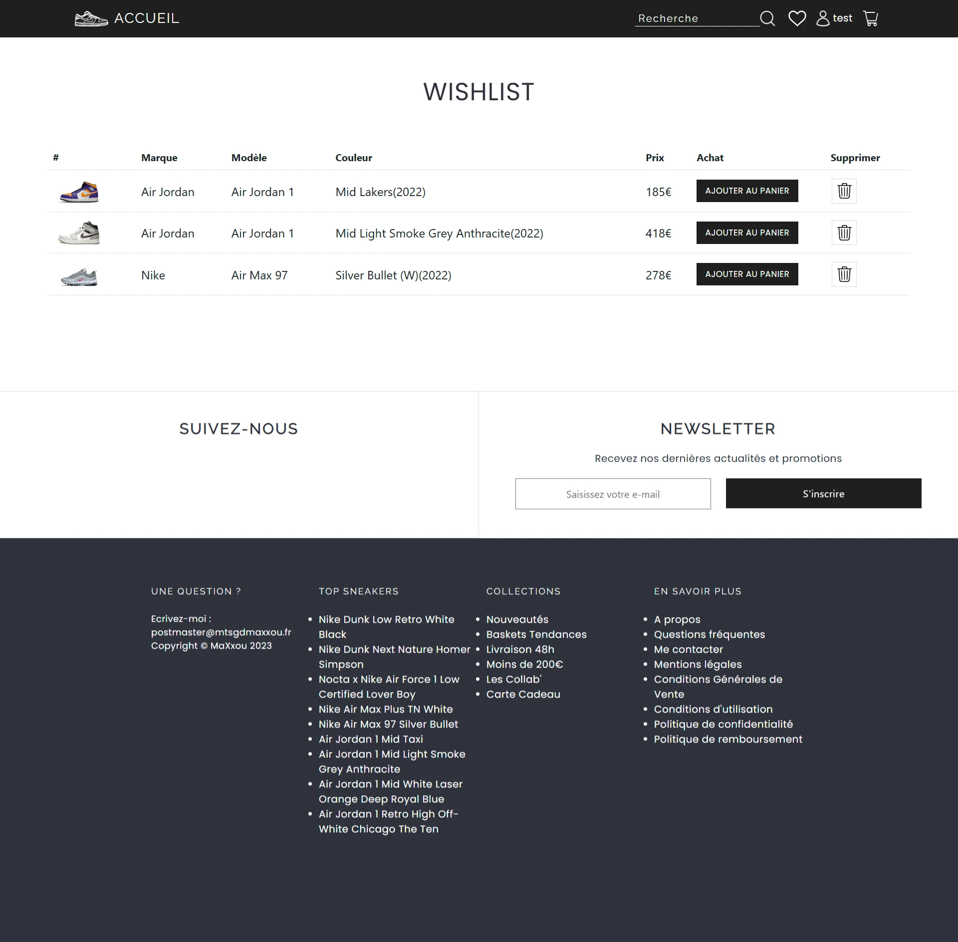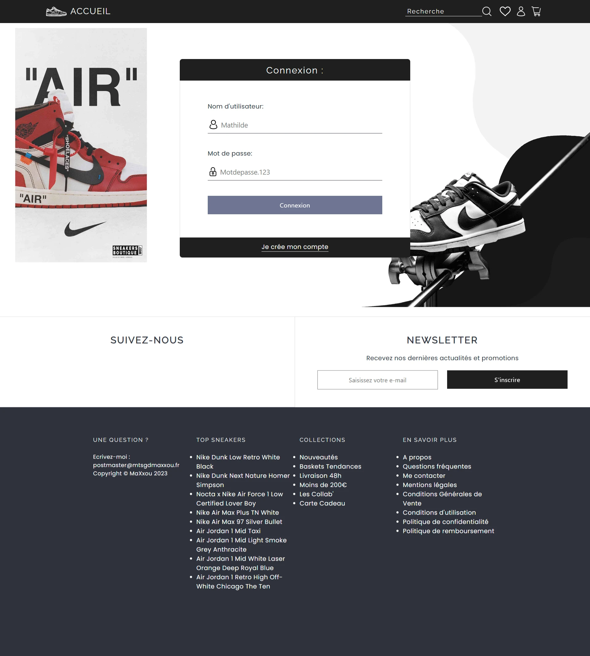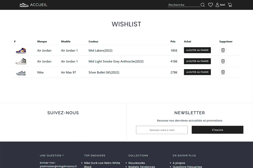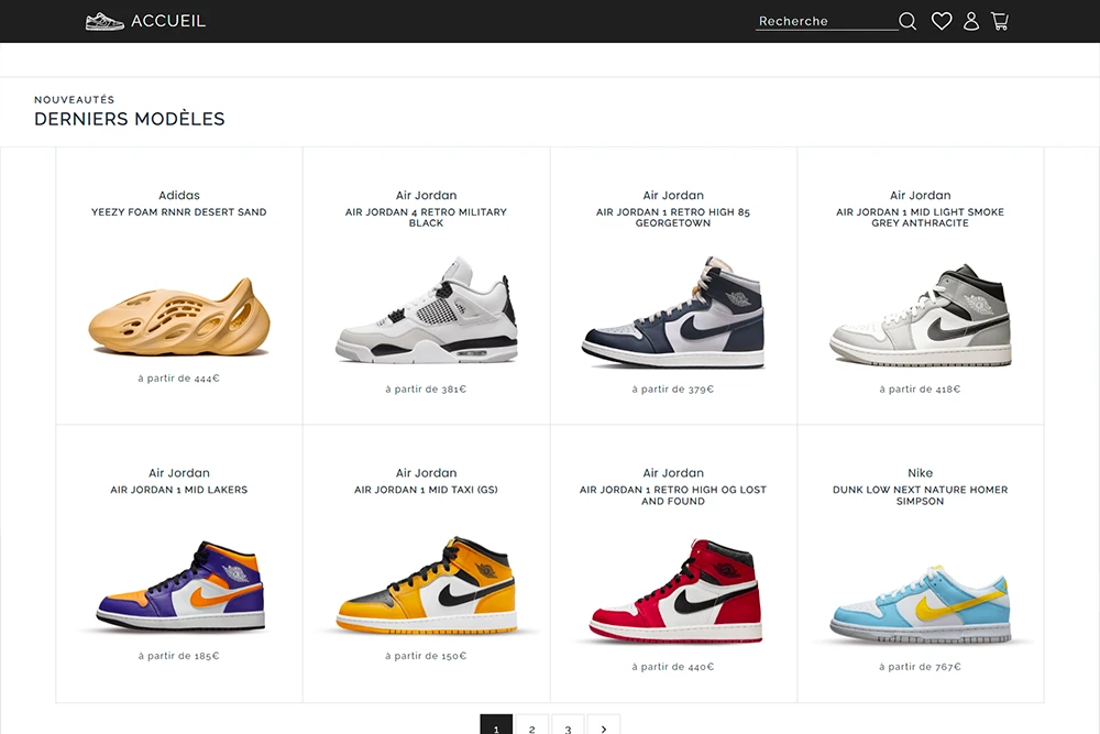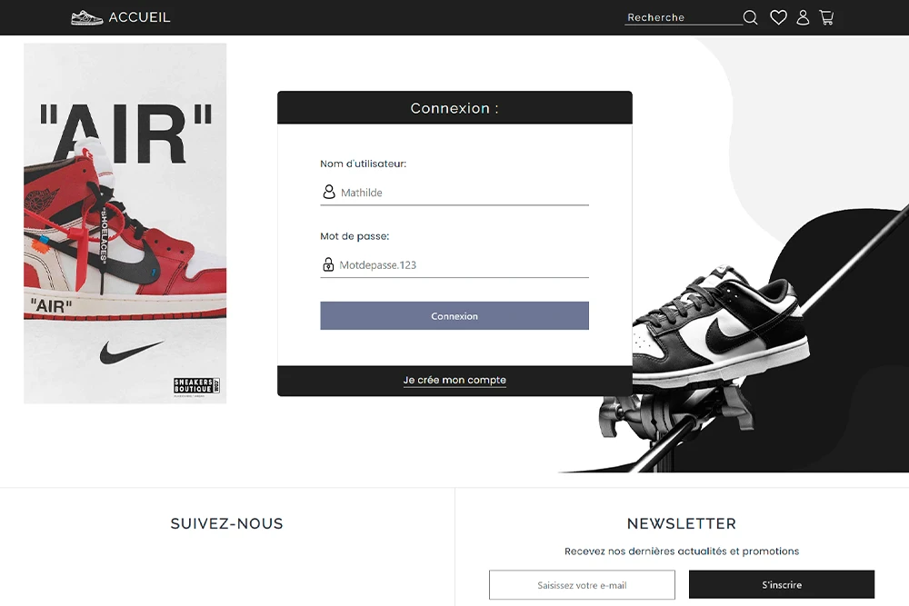 Boutique fictive de sneakers en ligne