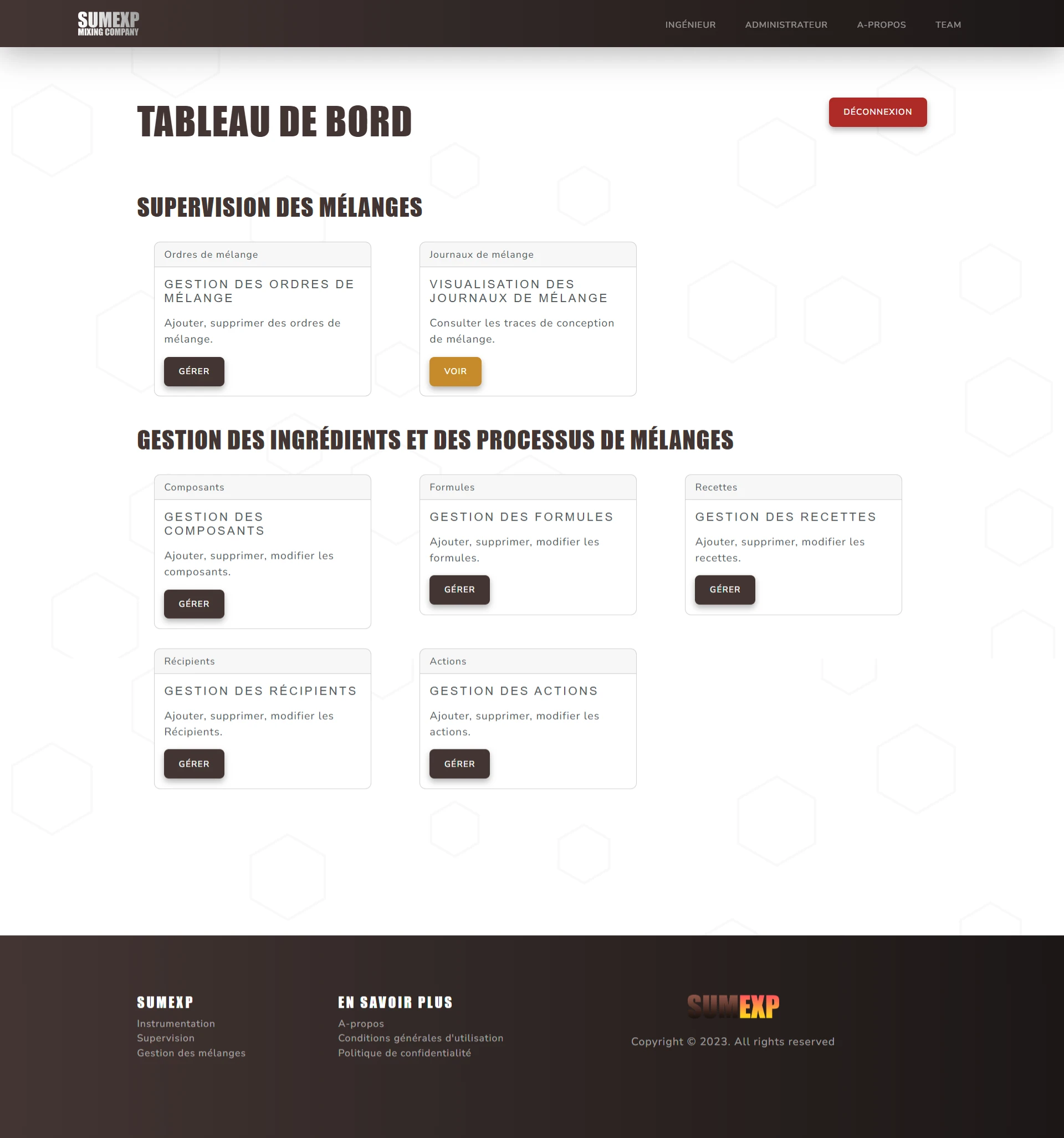 Le site web SUMEXP est un site de supervision d'une unité de mélange expérimental.